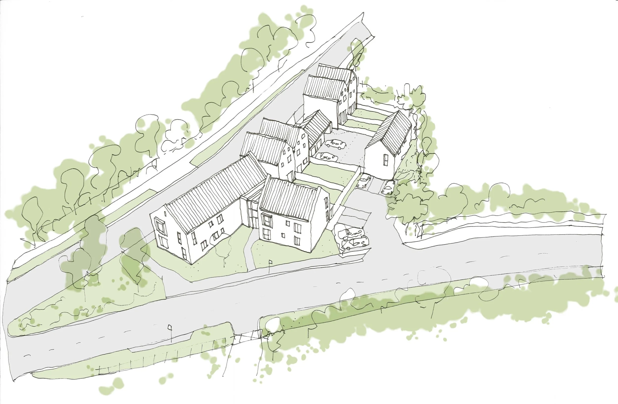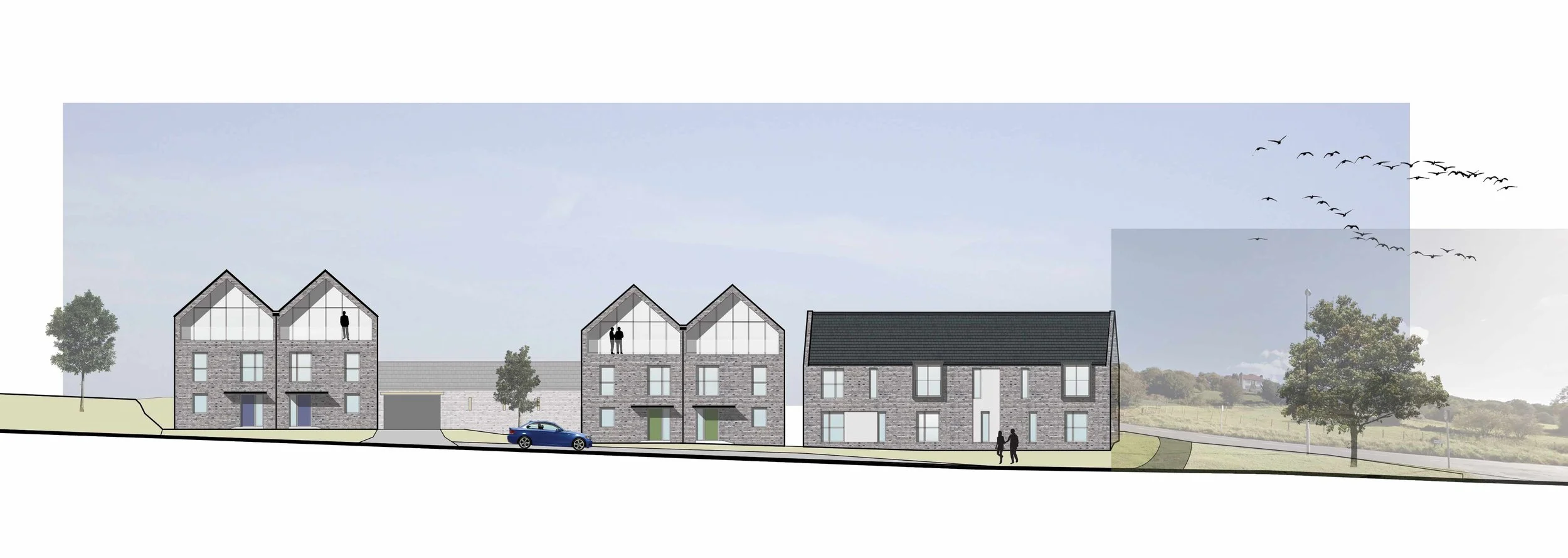 PARKdesigned were commissioned to design a residential scheme of 6 residential units within Greenbelt, on the outskirts of Leeds. The proposal presents a logical opportunity to redevelop a brownfield area of land into residential usage in a desirable area close to employment centres, with existing public transport links on, and adjacent to the site.